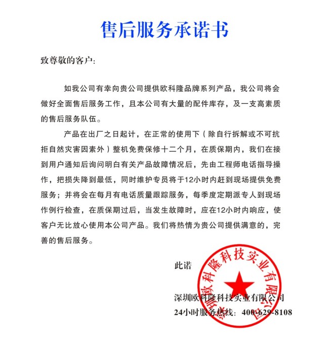 質(zhì)保期外售后服務(wù)成本價提供設(shè)備零部件;成本價提供維修保養(yǎng)服務(wù)。