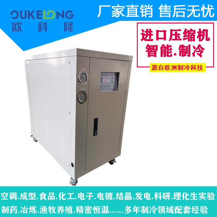 適用場景廣泛,可用于理化生實(shí)驗(yàn)室、高校、電子、電鍍、食品等行業(yè)。歐科隆還提供整機(jī)免費(fèi)保修一年、終身售后服務(wù),配送方式有工廠送貨上門和物流送貨上門,交期方面,有庫存配件1 - 3日即可交貨。歐科隆3匹水冷箱式冷水機(jī)組以其卓越性能和優(yōu)質(zhì)服務(wù),為各行業(yè)的制冷需求提供可靠保障。