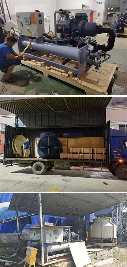 本案為出口到東南亞某國,為注塑廠中央供水系統(tǒng)冷水機組案例。采用兩套60匹水冷螺桿式冷水機組,制作精良,品質優(yōu)異深受用戶好評。