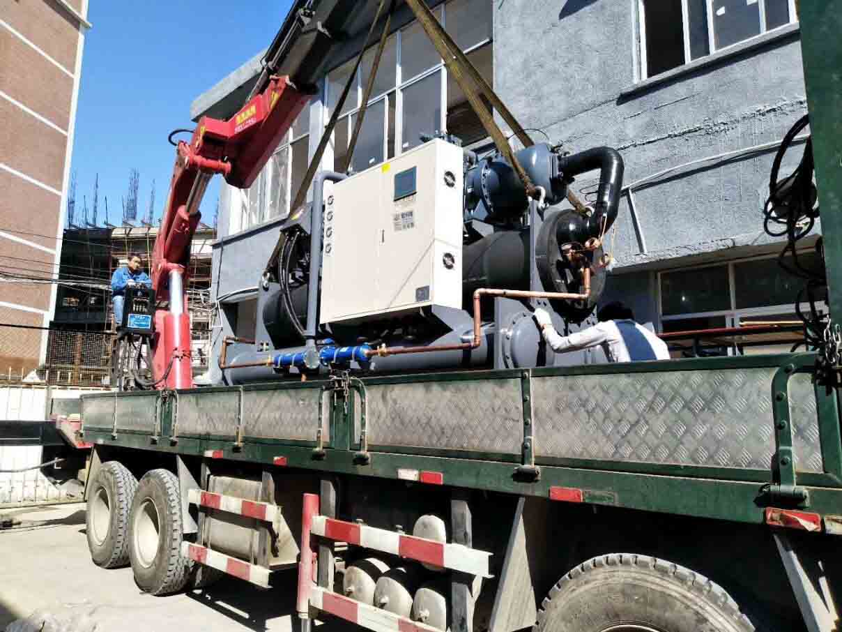 雙壓縮機(jī)雙制冷系統(tǒng)中央空調(diào)螺桿機(jī)裝載中